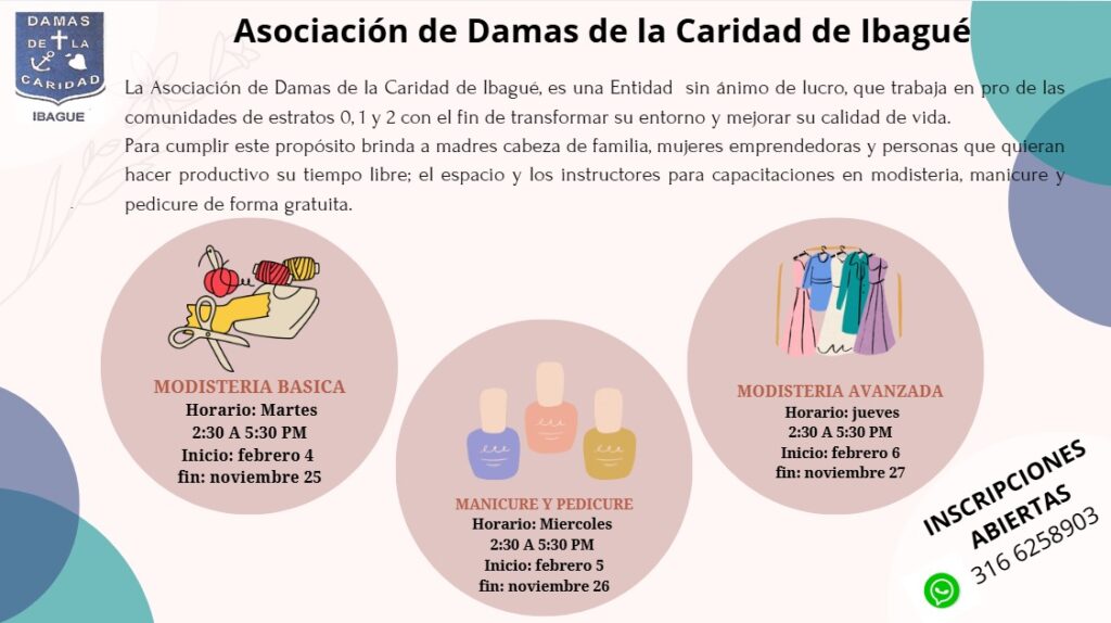 Hola 👋 ¿Bienvenido a la ASOCIACION DE DAMAS DE LA CARIDAD DE IBAGUÉ. En qué podemos ayudarte?